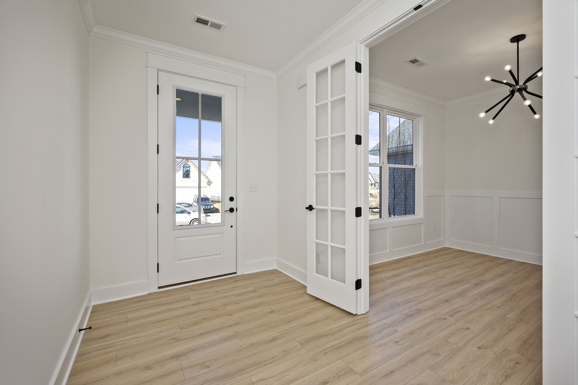 Unique modern farmhouse flair on this two-story floor plan with four bedrooms upstairs, a dining room, large kitchen with mudroom, pantry and laundry room, a great room, with foyer/study and dining room on the first floor. An attic storage on second floor, and a covered rear porch on back of the house. Half bathroom downstairs, two full bathrooms upstairs. All bedrooms have walk-in closets. With two car garage.